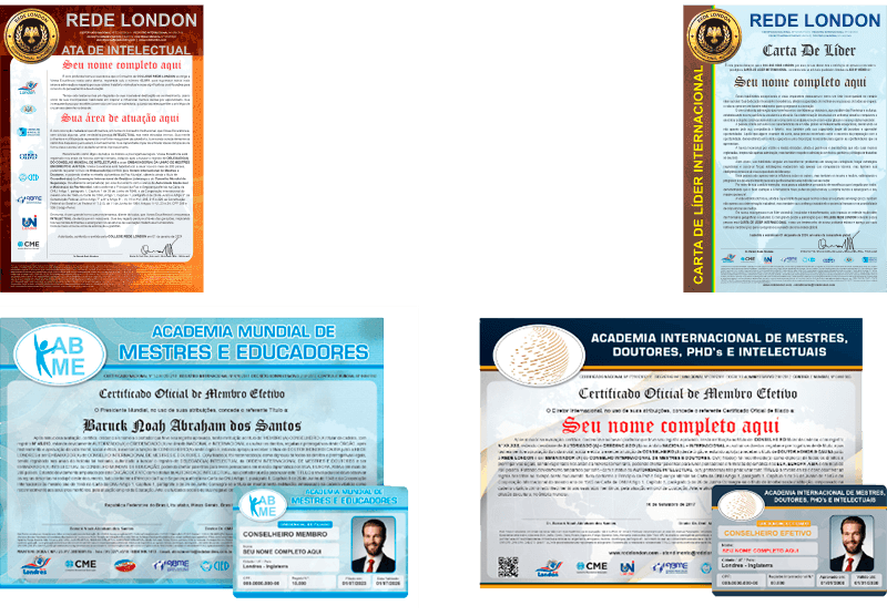 Conquiste a DUPLA CERTIFICAÇÃO INTERNACIONAL e alcance o merecido reconhecimento e respeito no Brasil, Estados Unidos, Europa e outros 200 países. Ao receber estes dois valiosos certificados de nível MASTER e INTERNACIONAL e as duas credenciais personalizadas, você estará valorizando e destacando ainda mais seus conhecimentos. Além disso, as duas credenciais em PVC serão personalizadas, com sua foto impressa, agregando ainda mais credibilidade e prestígio à sua conquista. A DUPLA CERTIFICAÇÃO INTERNACIONAL já está inclusa nos planos ESSENCIAL ou PREMIUM. Realize o pagamento agora e prepare-se para receber um salto em sua carreira. Aproveite essa chance extraordinária oferecida pela REDE LONDON. Para você ser amplamente respeitado e conquistar o sucesso que você merece.